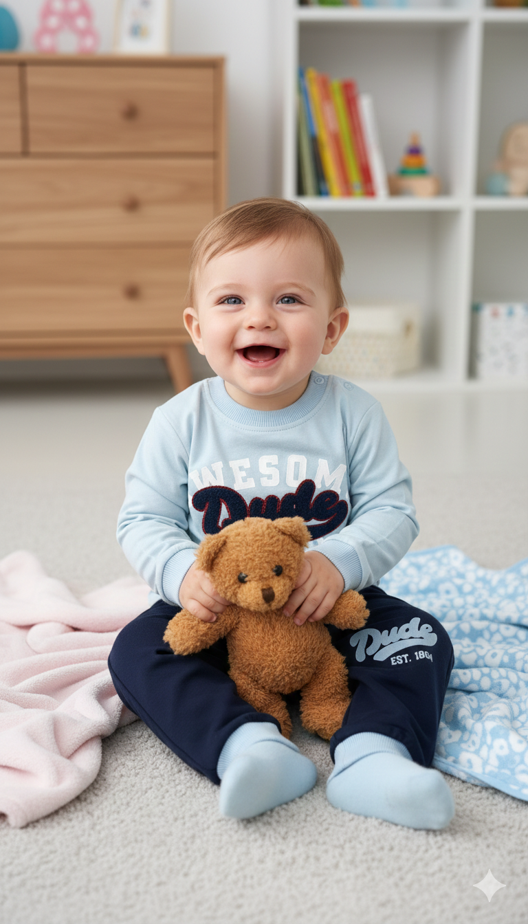 Keep your little one cozy and comfortable with this adorable baby boys 2 piece pajama set in Green color. Made from soft and breathable cotton, the set includes a full sleeves shirt and matching pajama pants. Perfect for daily wear, sleepwear, or casual lounging at home, this outfit ensures all-day comfort while keeping your baby stylish and cute.